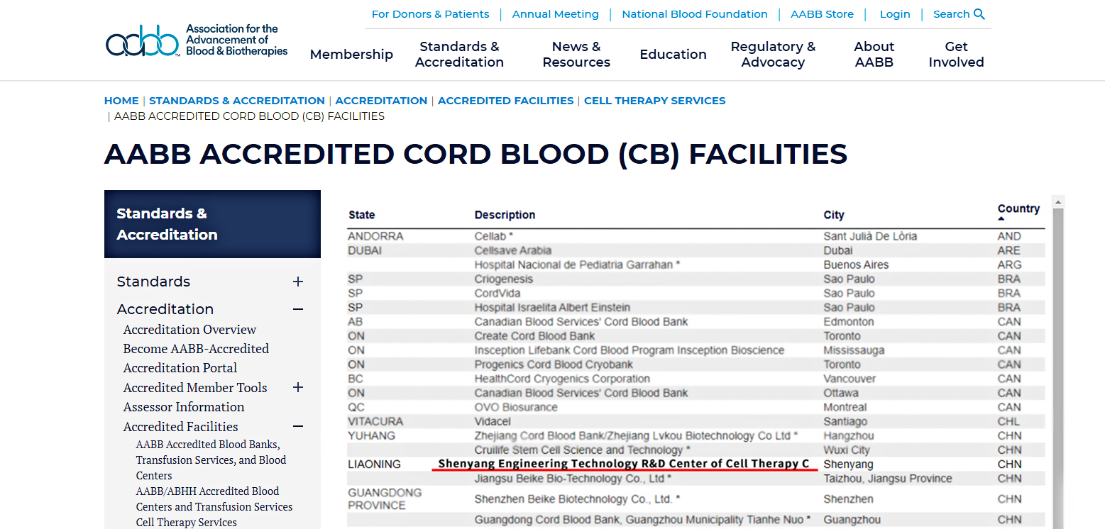 AABB官網(wǎng)新聞鏈接網(wǎng)址:https://www.aabb.org/standards-accreditation/accreditation/accredited-facilities/cell-therapy-services/aabb-accredited-cord-blood-facilities