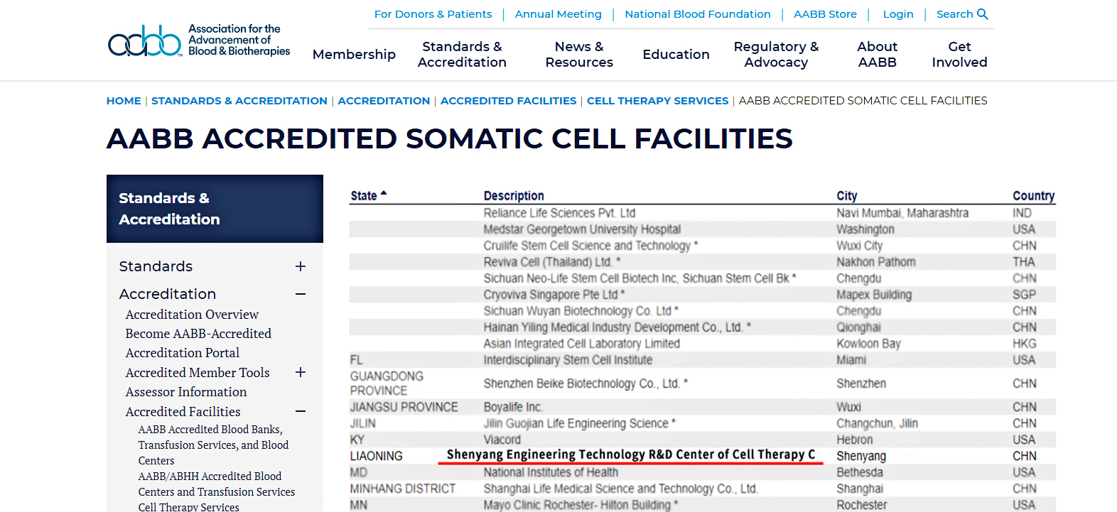 AABB官網(wǎng)新聞鏈接網(wǎng)址:https://www.aabb.org/standards-accreditation/accreditation/accredited-facilities/cell-therapy-services/aabb-accredited-somatic-cell-facilities